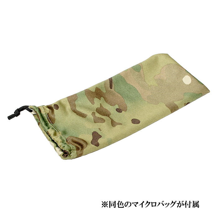 太めのフレームのカラーが米陸軍採用のMULTICAMカラー、レンズは可視光線透過率10%、紫外線透過率0%のグレーカラーレンズを装備。