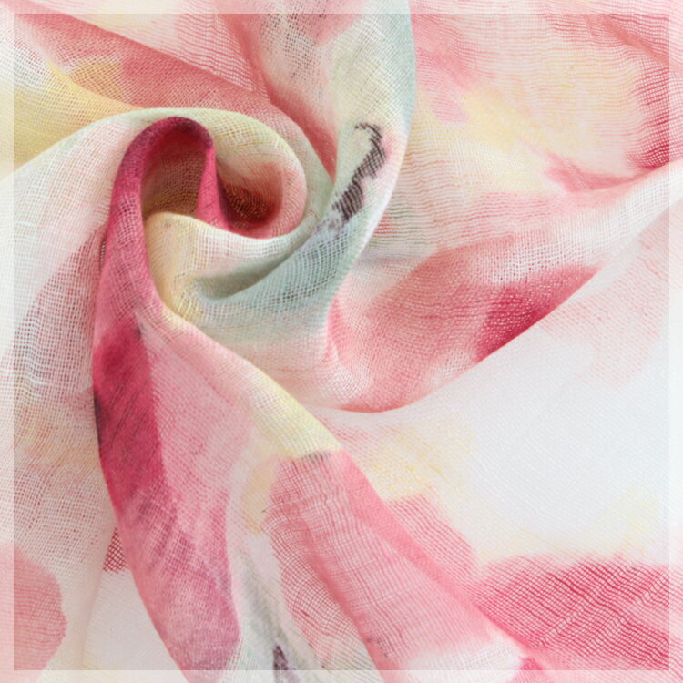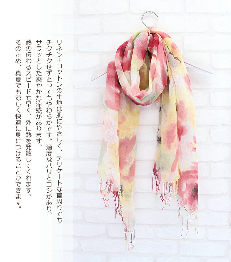 大判サイズのストールで首元に巻く以外に肩から羽織る使い方もでき、春夏の日除けや室内の冷房対策としても使いやすくなっています。